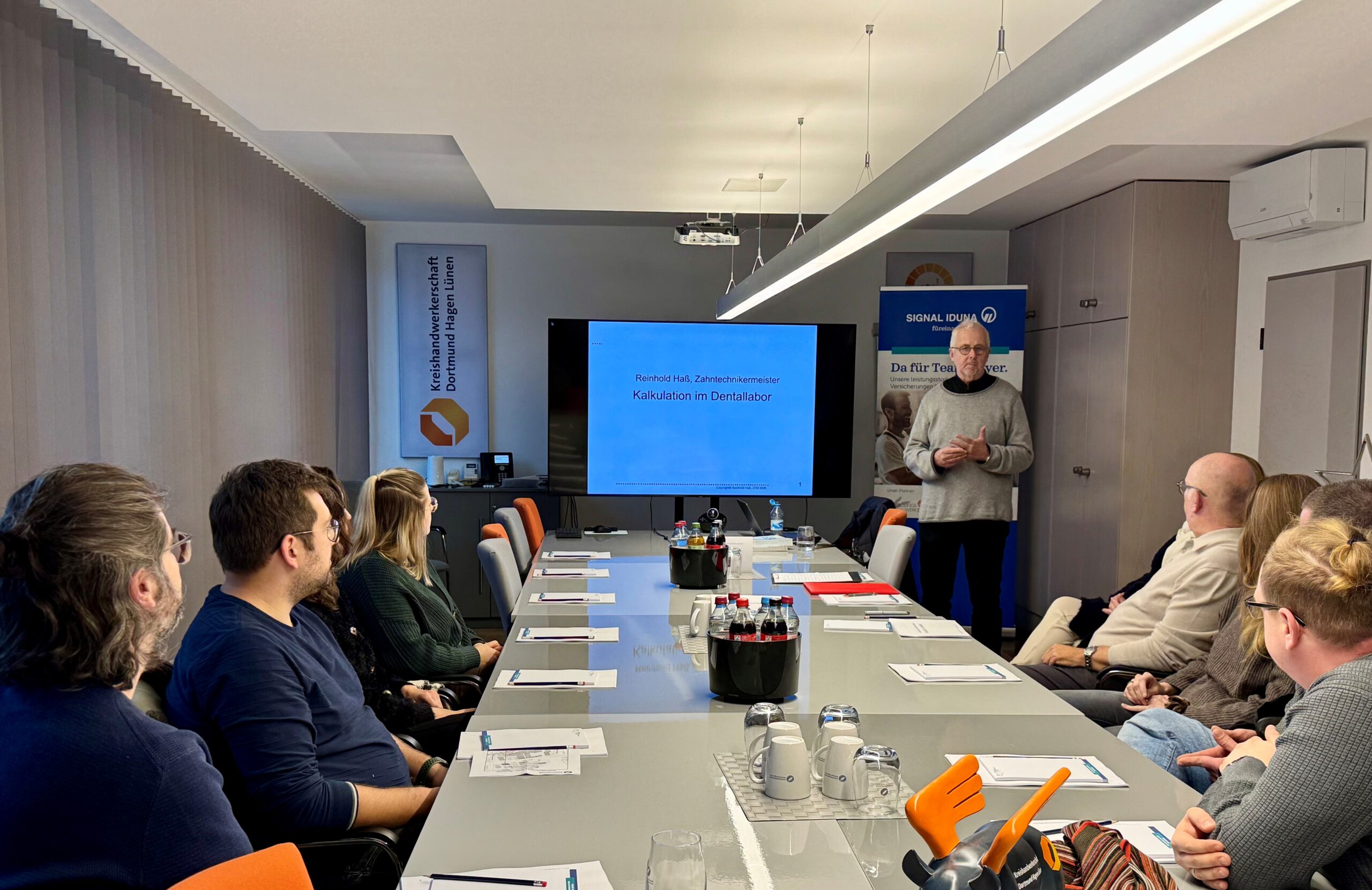 Am 26. November 2025 fand das Seminar „Kalkulation im Dentallabor“ statt. Unter der Leitung von ZTM Reinhold Haß erhielten die Teilnehmenden einen umfassenden Einblick in betriebswirtschaftliche Grundlagen und praxisnahe Methoden zur wirtschaftlichen Steuerung von Dentallaboren.
